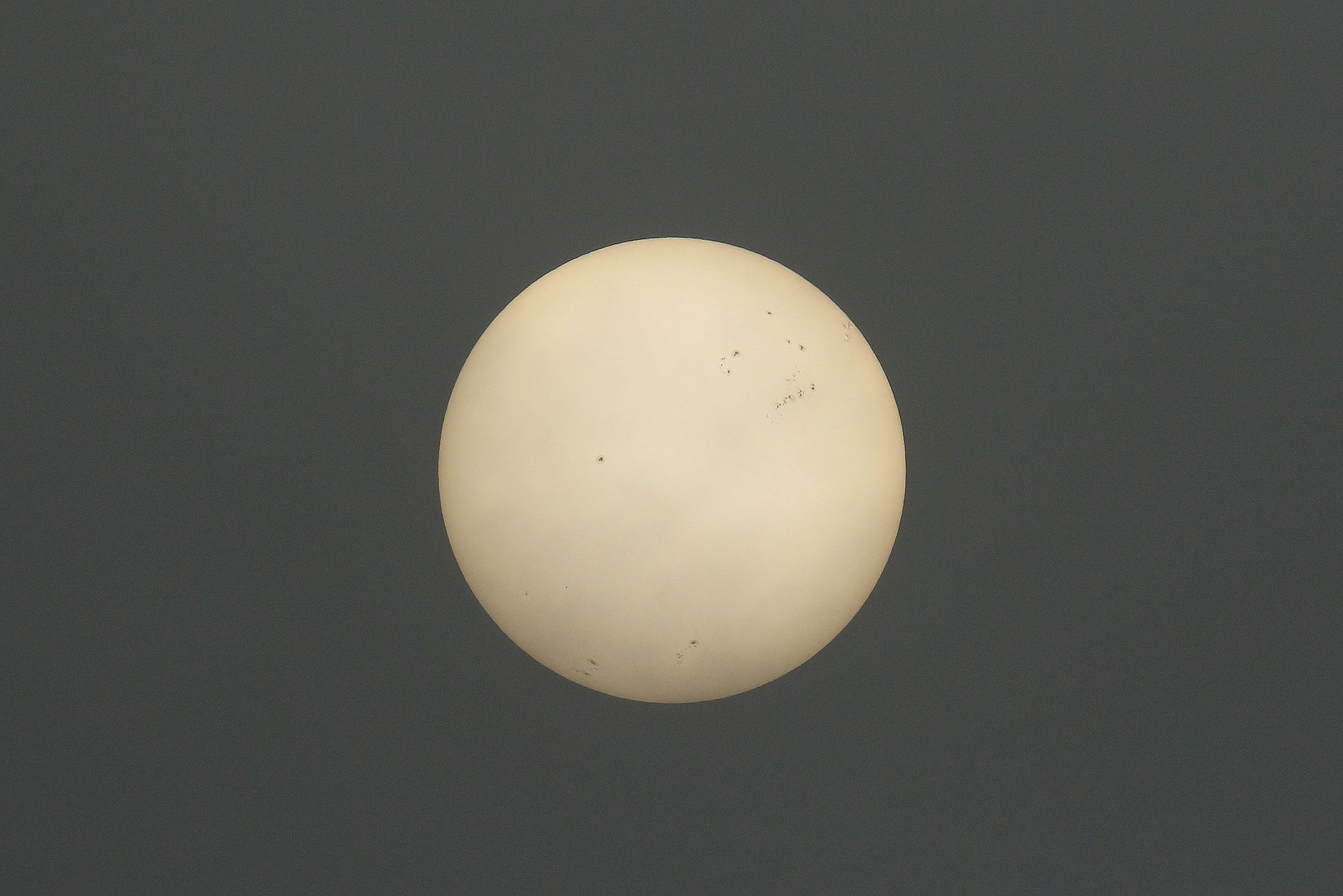 Below: An image of the Sun, taken this morning through the foggy skies at Corbiere, showing a good number of sunspots MD