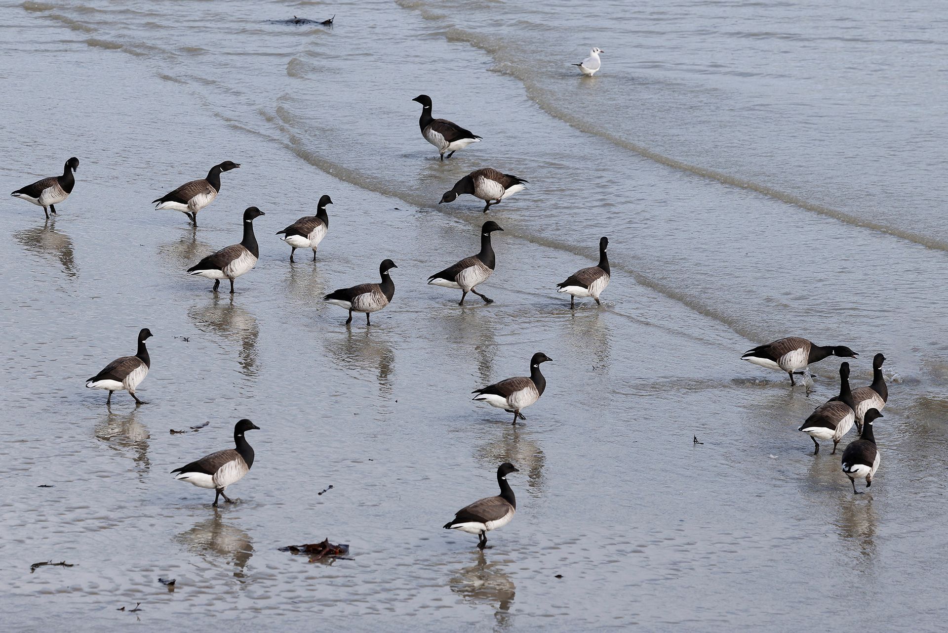 Outside St Aubin's Harbour were 5 pale-bellied Brent Geese, 32 Redshanks, 57 Black-headed Gulls and a Grey Wagtail.