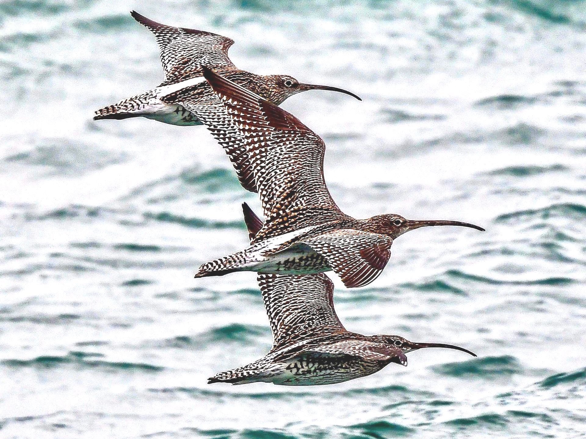 18.02.2024 A trio of Curlews on a fly past of La Rocque, thanks to Tom Frazer