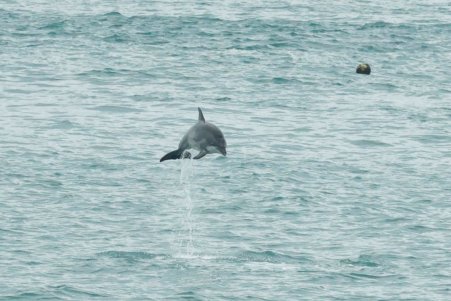 Below: Bottle-nosed Dolphins in flight at Corbiere this morning MD